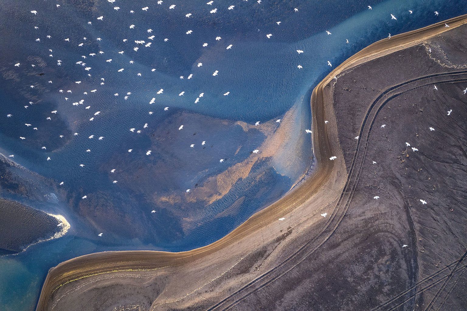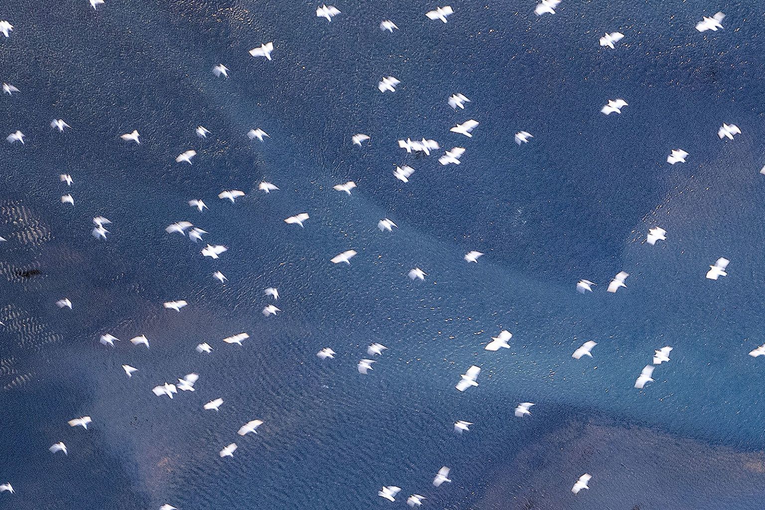 For example, in the image below, I used an ND filter because I was recording video, then switched to photo mode mid-flight to capture a still image. The shutter speed was too slow (unbeknownst to me at the time) to freeze the birds flying over the water.