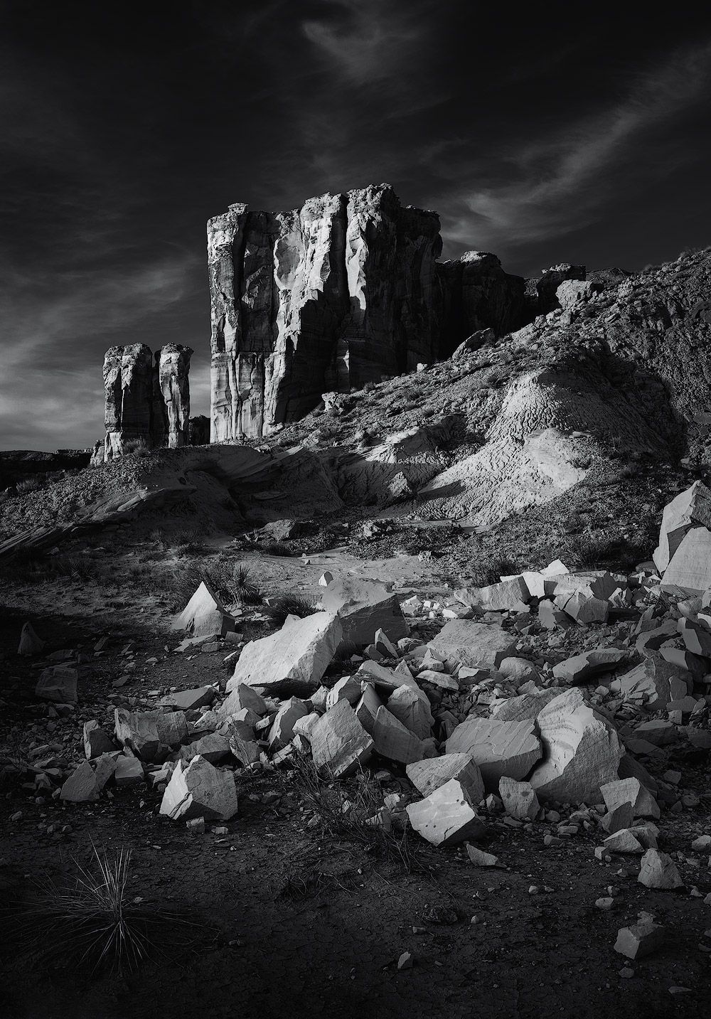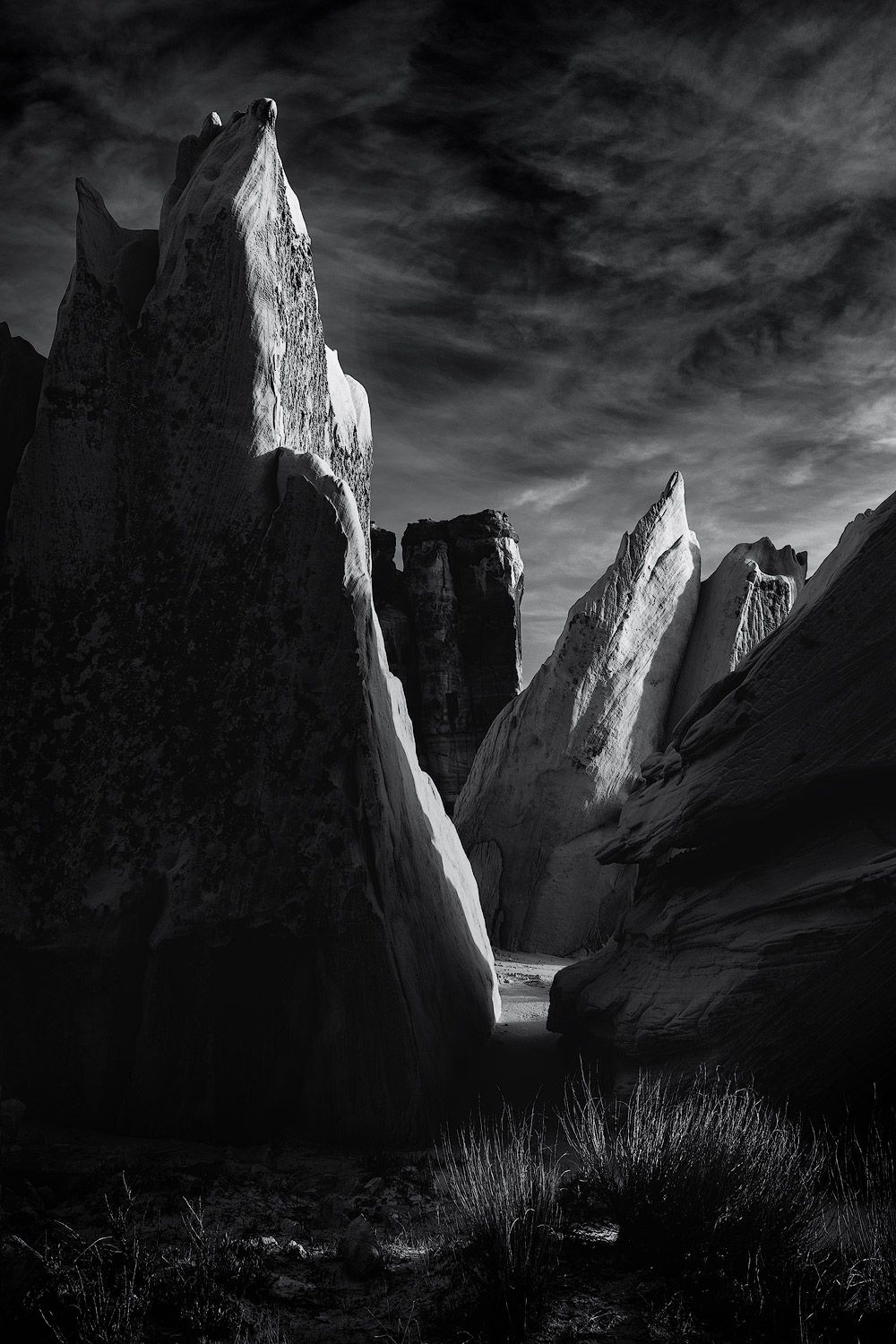 I had no intent of creating a black and white image, but later realized the way I had visualized the subject in the field didn't work as a color photograph. Color made the image feel busy, unmotivated, and didn't emphasize what drew me to the scene originally — those sharp, angled lines in the rocks.