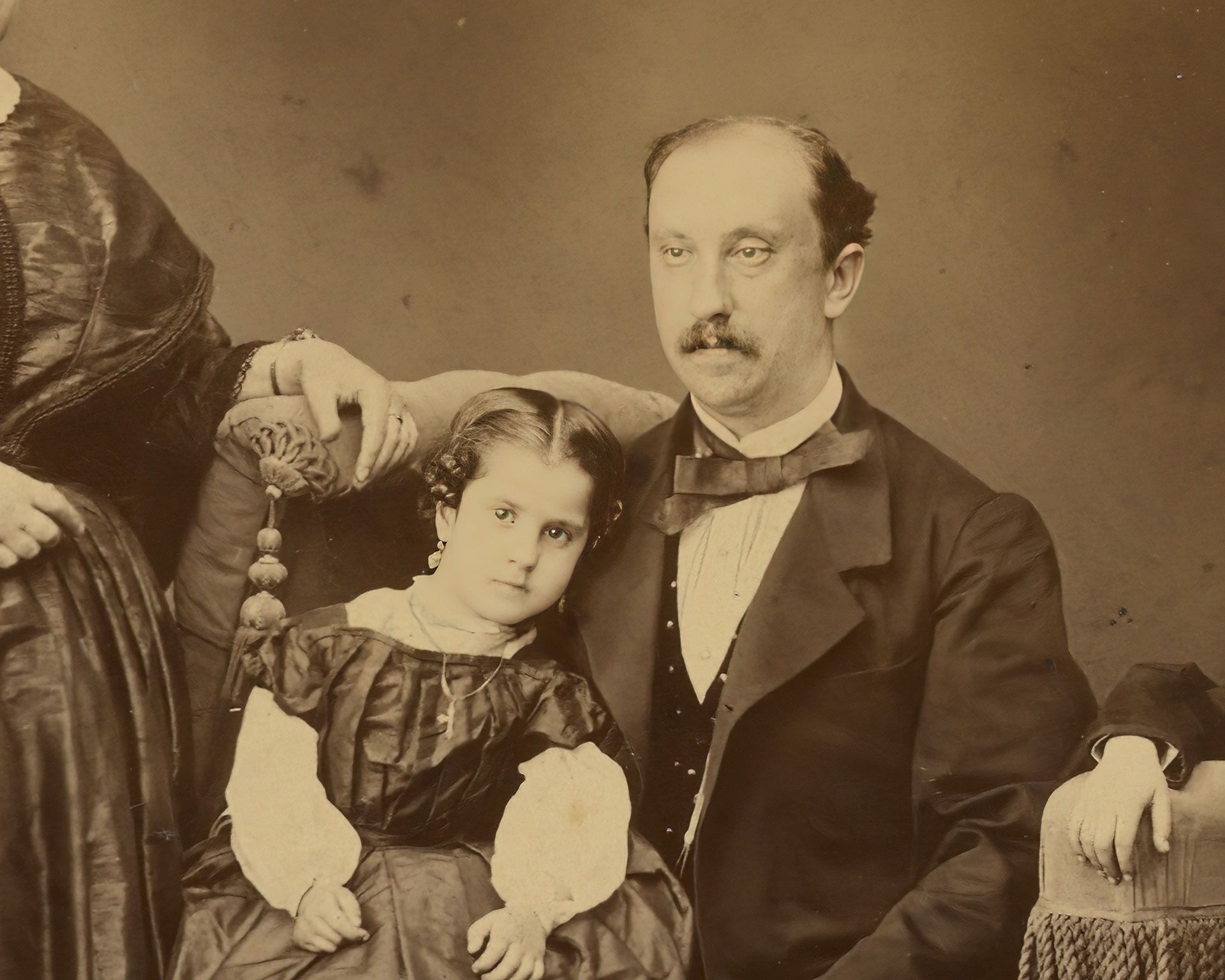 First of all, I'm fascinated by old images like this. Who were these people? What kind of life did they have? Considering how expensive photographs were in this time period, and the clothes and accessories they're wearing, I assume this was a well-to-do family. Also notice how good the lighting, details and tonal values are, with plenty of detail in the highlights and shadows. I think the man at far left is also a dead ringer for actor Alec Baldwin (with a goatee).