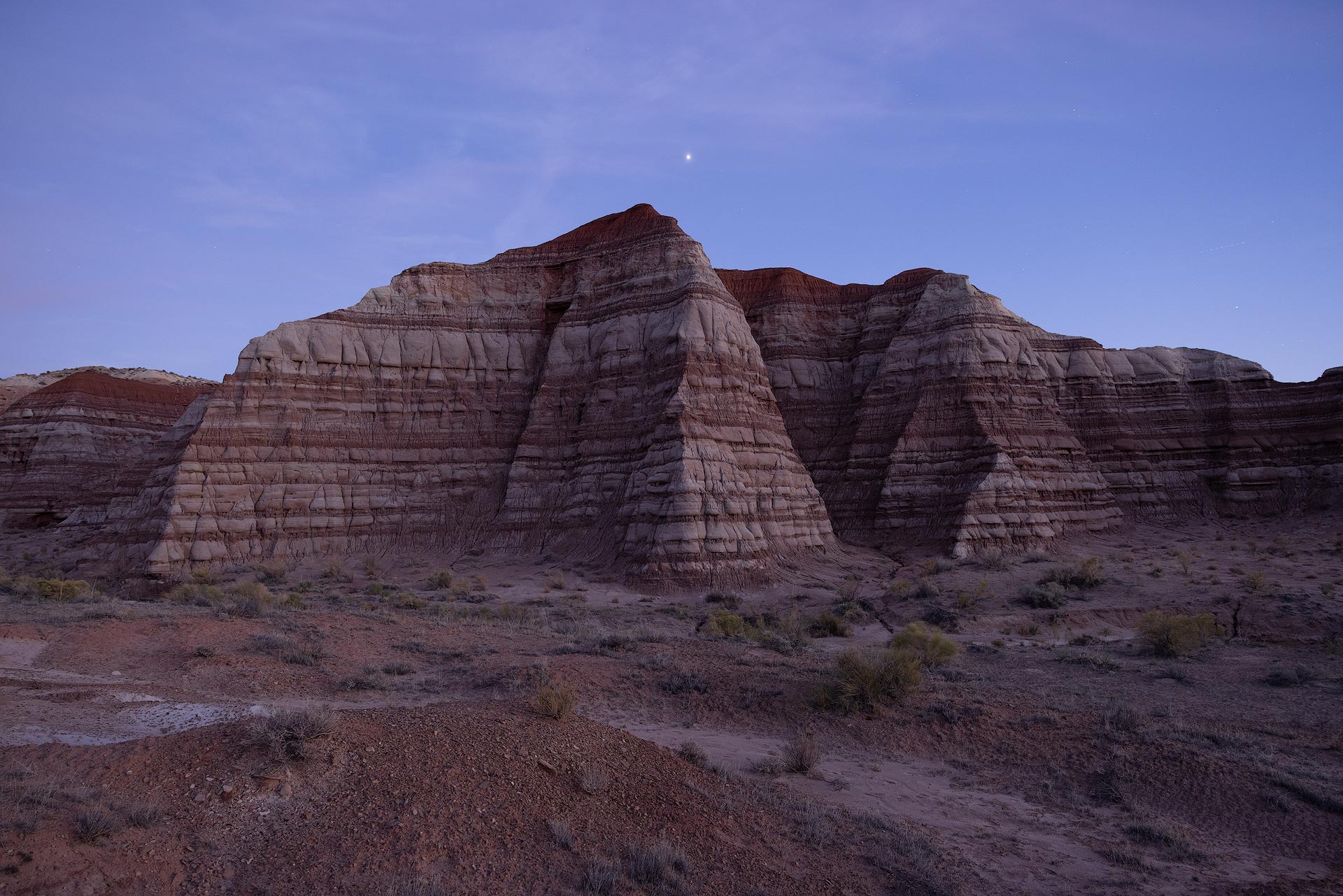 For example, I captured the following image midday as part of a "scouting" effort to find suitable subjects and compositions for shooting at sunrise or sunset. I exposed for the highlights (the sand) to ensure I wouldn't blow out my highlights. The mountains in the background are hazy, and the image colors aren't particularly great either. Also, in continuation of my earlier point, color isn't contributing anything of value.