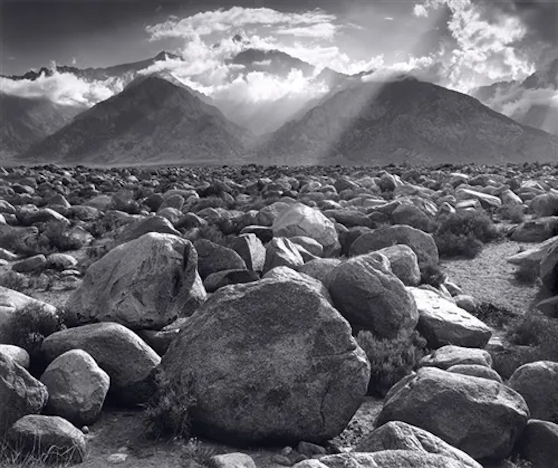 I had no idea who Ansel Adams was, or knew much about photography, but I was instantly captivated by his photograph. The image was dark, mysterious, and there was something about the cluster of boulders in the foreground and the glowing, atmospheric mountains in the back that pulled me in. A world away from the manicured lawns, green trees, and cookie-cutter houses of my day-to-day environment.