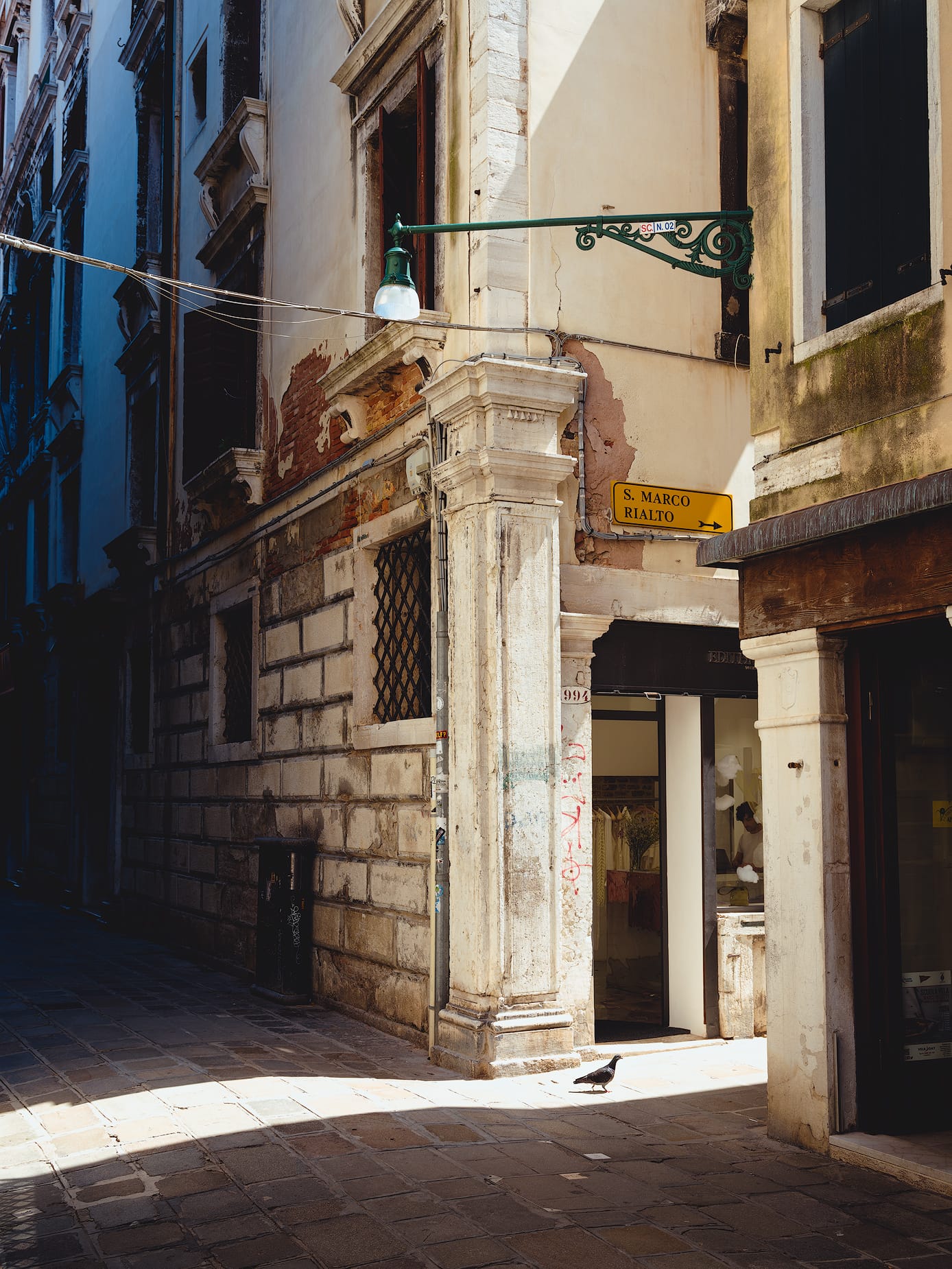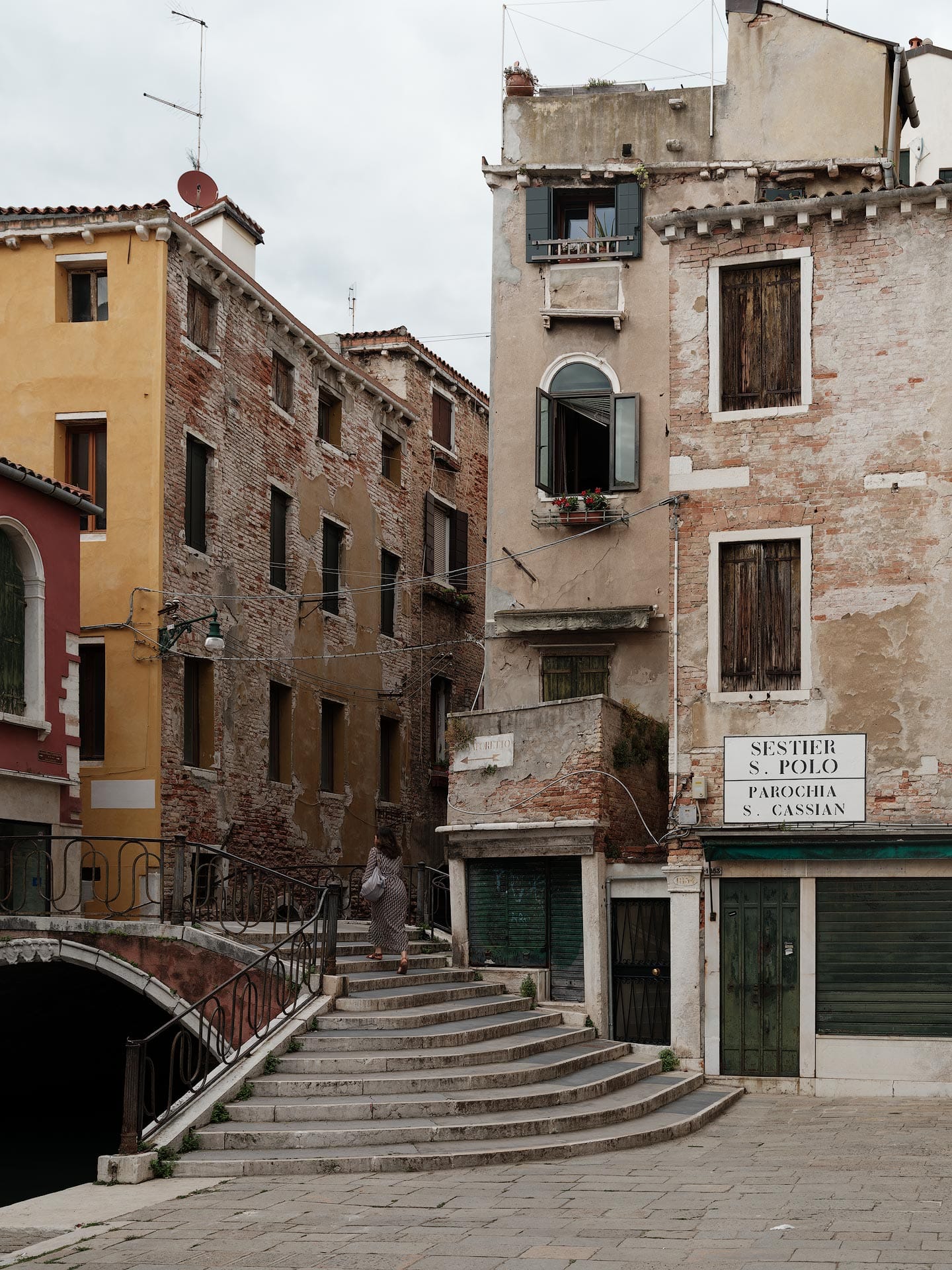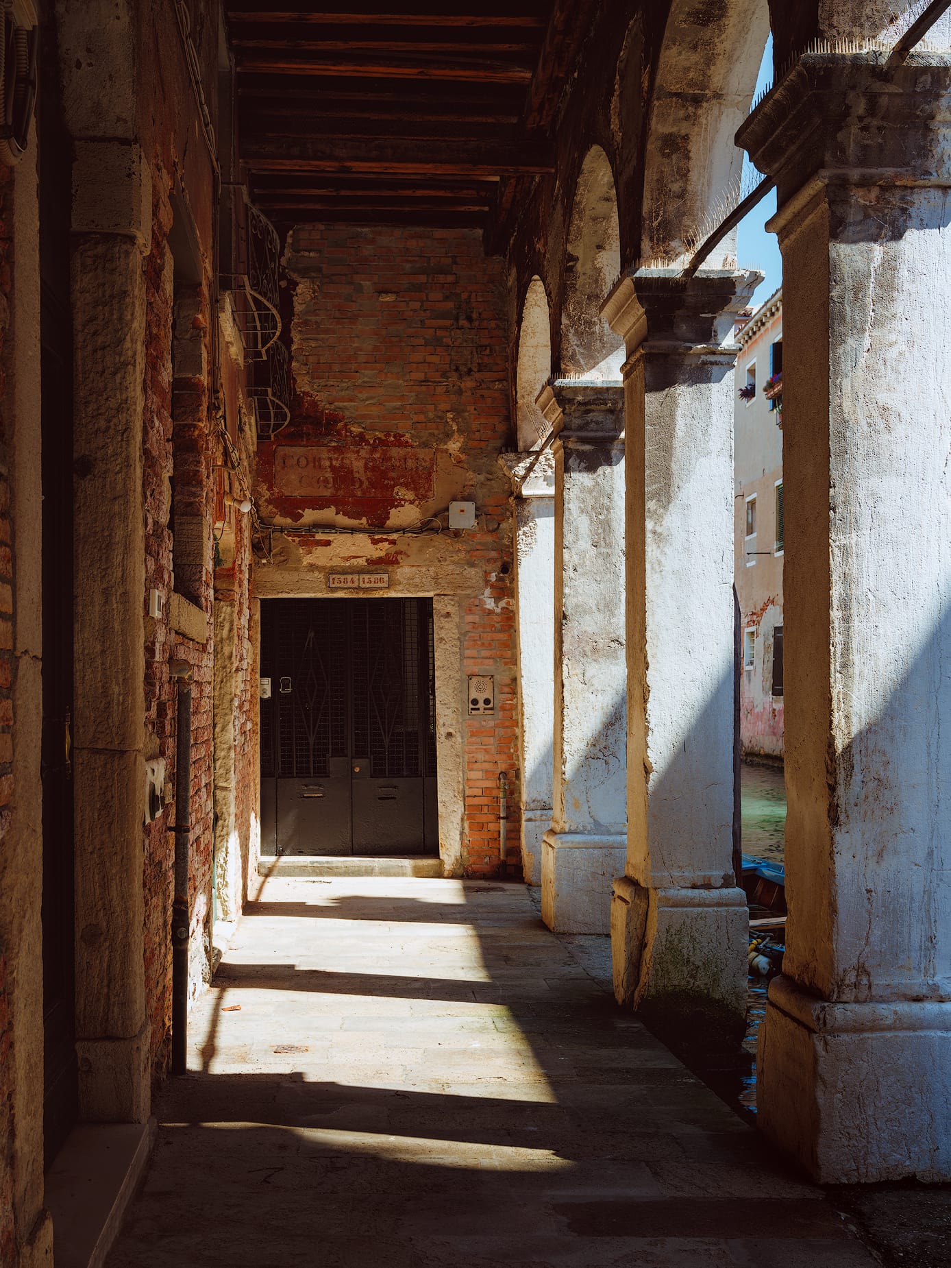 Venice is a lot like photographing slot canyons in the American West, where sunlight does not illuminate interior walls until the sun is high the sky. Otherwise, alleys and canals are dark, dim, and gray. Sunrise and sunset is beautiful around the Grand Canal where there's more open space, but not in the interiors of the city where the buildings often block sunlight.