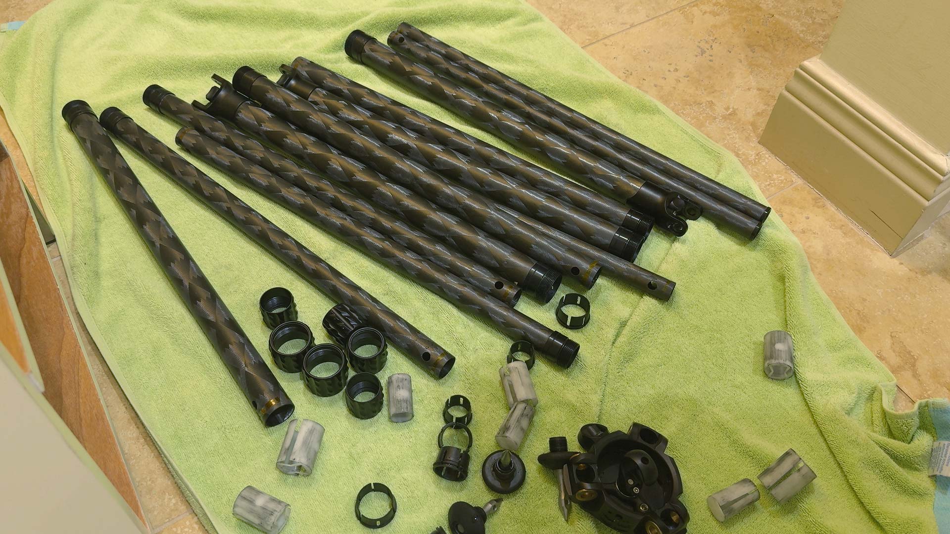 Do your best to dry each piece with a microfiber towel, then lay everything out on the towel. It will likely take a few hours for all remaining moisture to evaporate and dry. If the white plastic end caps are stained with black streaks and marks (as mine do in the image below), that's okay. What's important is removing any grit or gunk sticking to the plastic's outer surface.