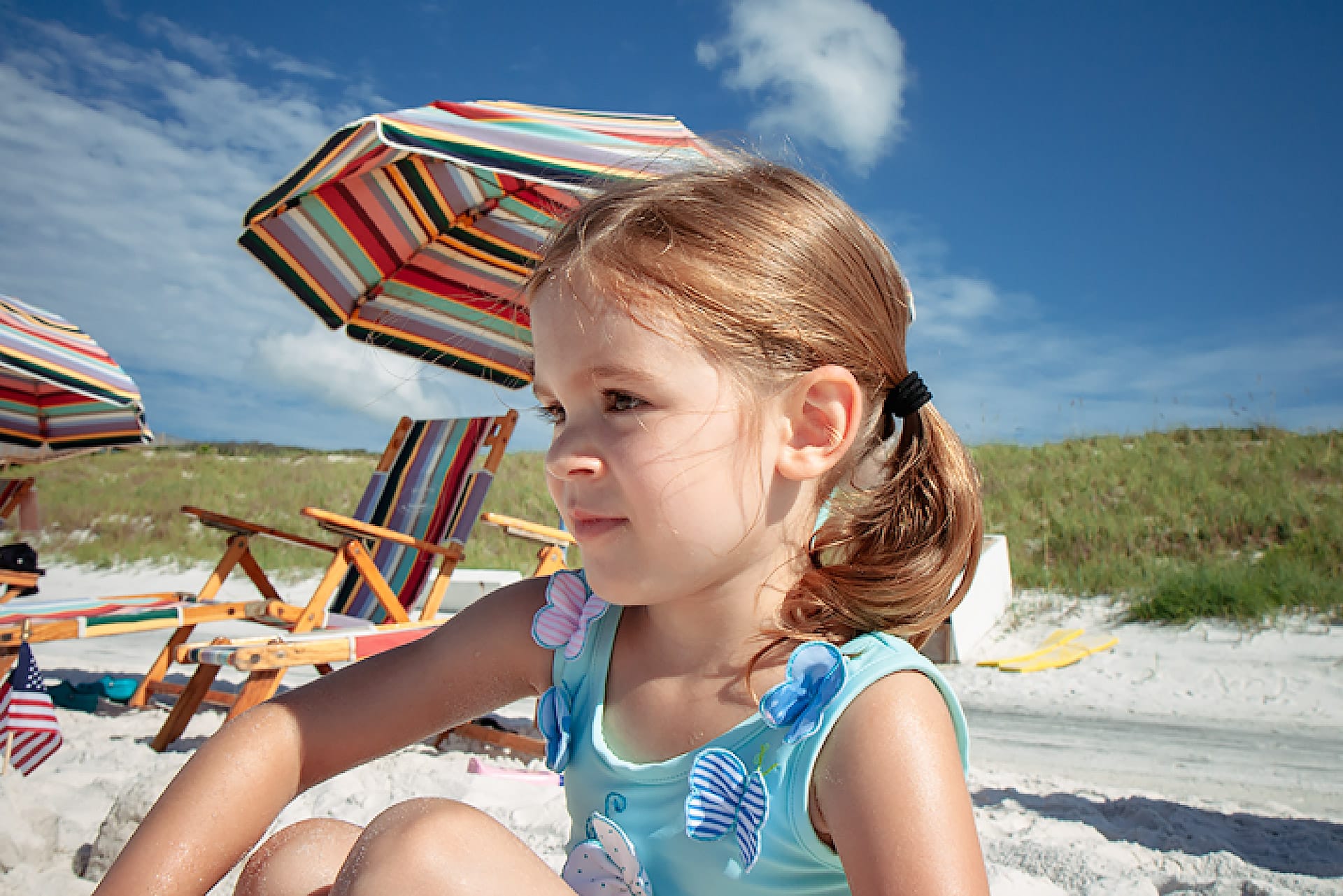 Both images were downscaled to view here, but you can still see a difference. The Gigapixel 8 image looks more natural, with smoother tonality, better detail, and fewer artifacts compared to Photoshop. Notice how much cleaner and well defined her hair is, and how much sharper and clearer the butterflies are on the front of her swimsuit. Face Recovery also helped improve the clarity of her eyes and smooth/denoise her skin.