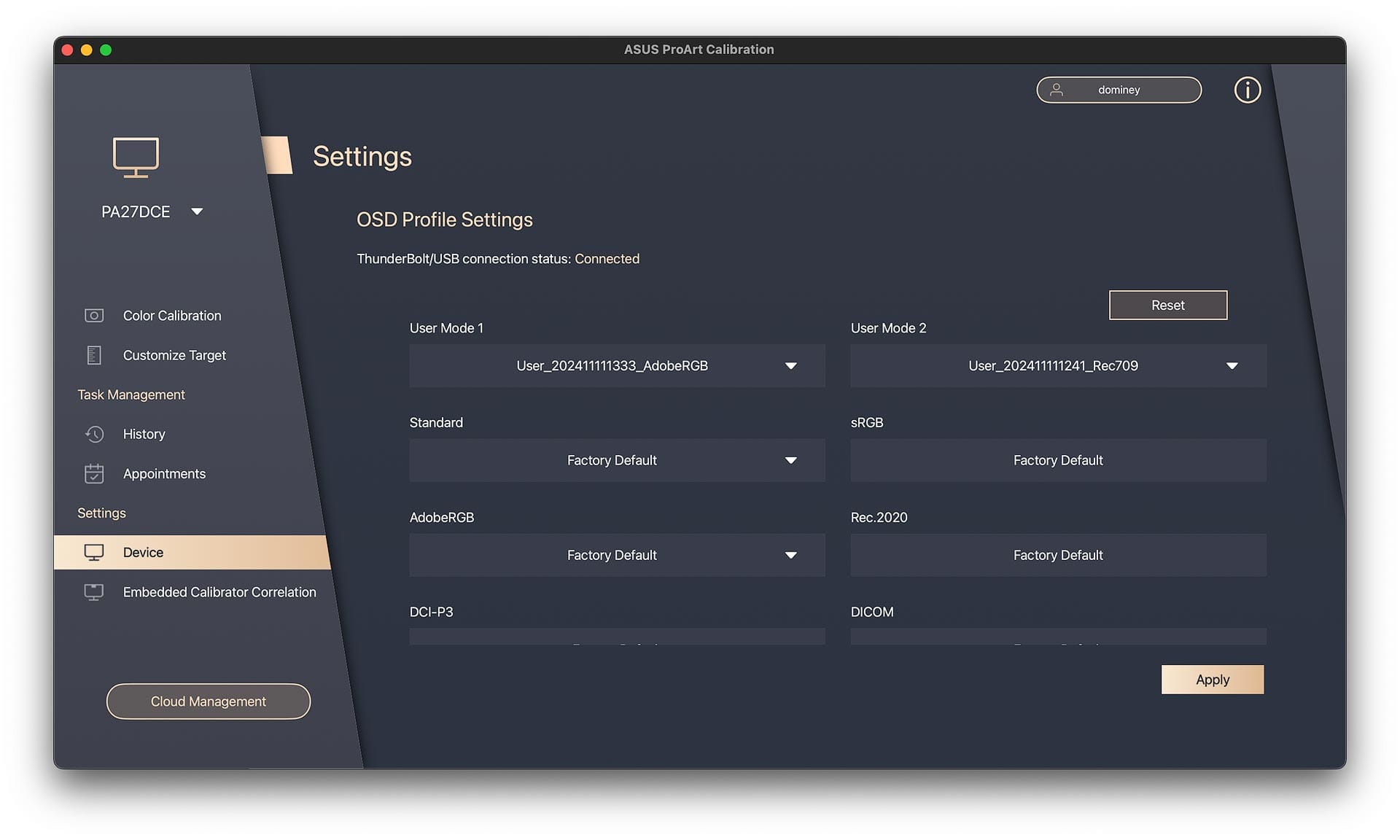 In team environments with multiple ASUS ProArt displays, ProArt Calibration offers a "Cloud Management" feature (accessible via the button at the lower left). This service enables IT managers to register multiple ProArt displays, set calibration schedules and reminders, and assign specific color presets to each display—such as Rec.709 for video editors or AdobeRGB for photographers. This setup ensures color accuracy and consistent output across all screens, reducing the risk of user error during calibration. While solo creatives may not need Cloud Management, it may be valuable in business or educational settings.