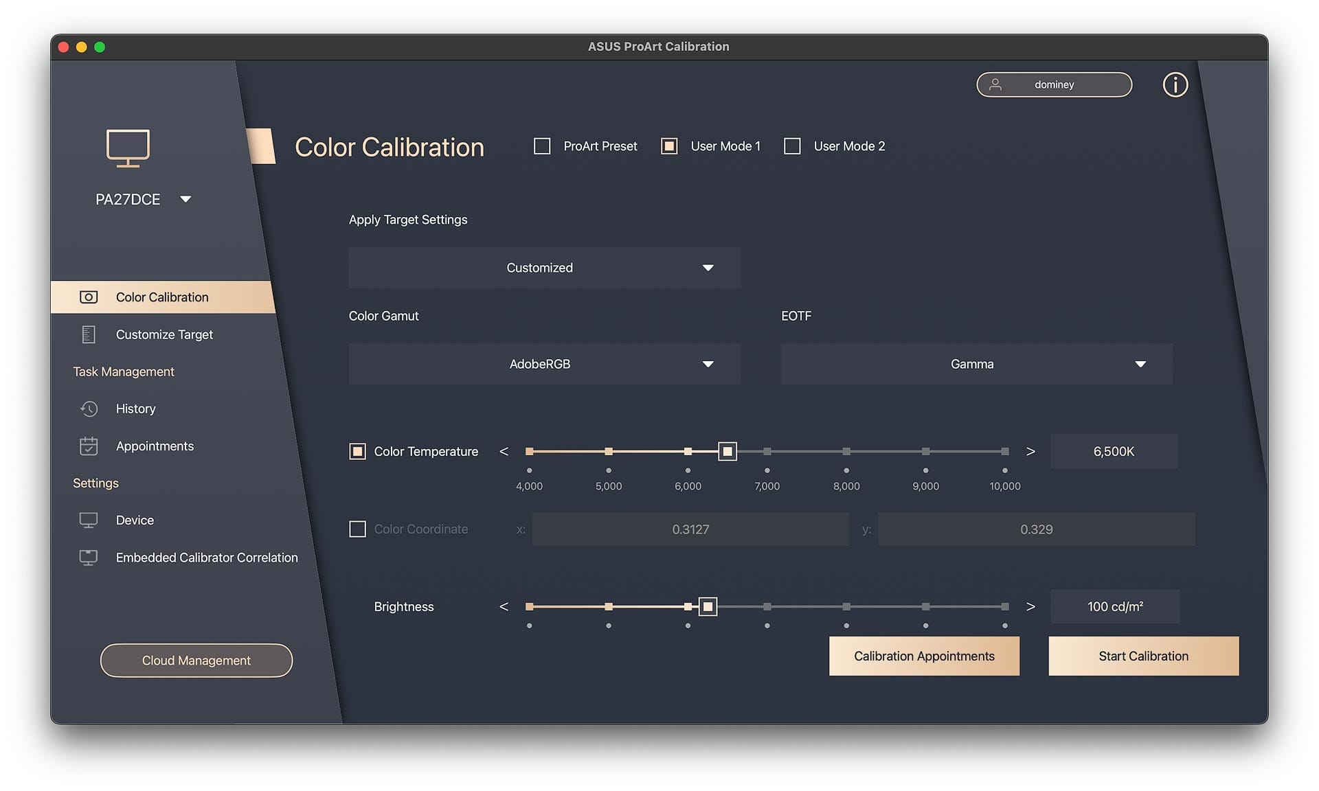 ASUS ProArt displays are calibrated using the ProArt Calibration desktop app, available for both macOS and Windows. Custom calibration software is necessary to directly interface with the display, adjust settings, and store color parameter profiles in the display hardware. This is why hardware calibrated displays—like the PA27DCE-K—are more color accurate than standard desktop displays.