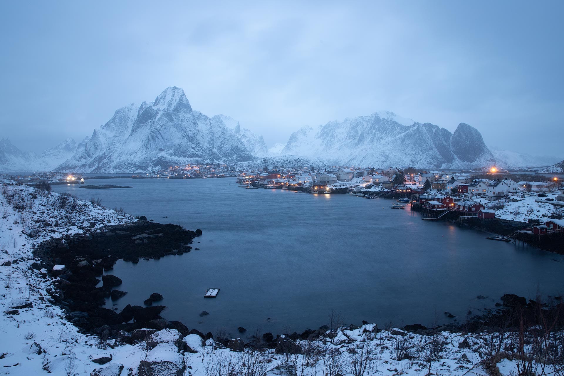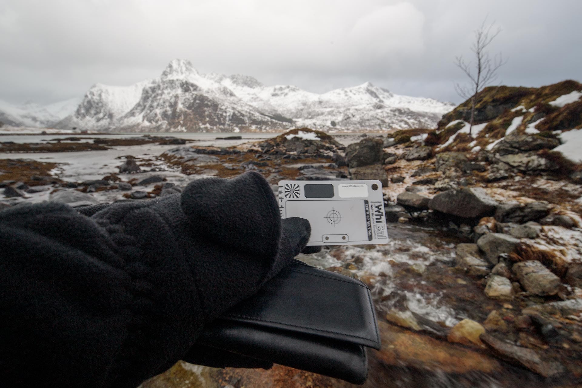 For example, here's an old image of mine captured at blue hour early in the morning just before sunrise in Lofoten, Norway. All the color, atmosphere and vibe is removed when its white balance is "corrected" using the card and eyedropper.