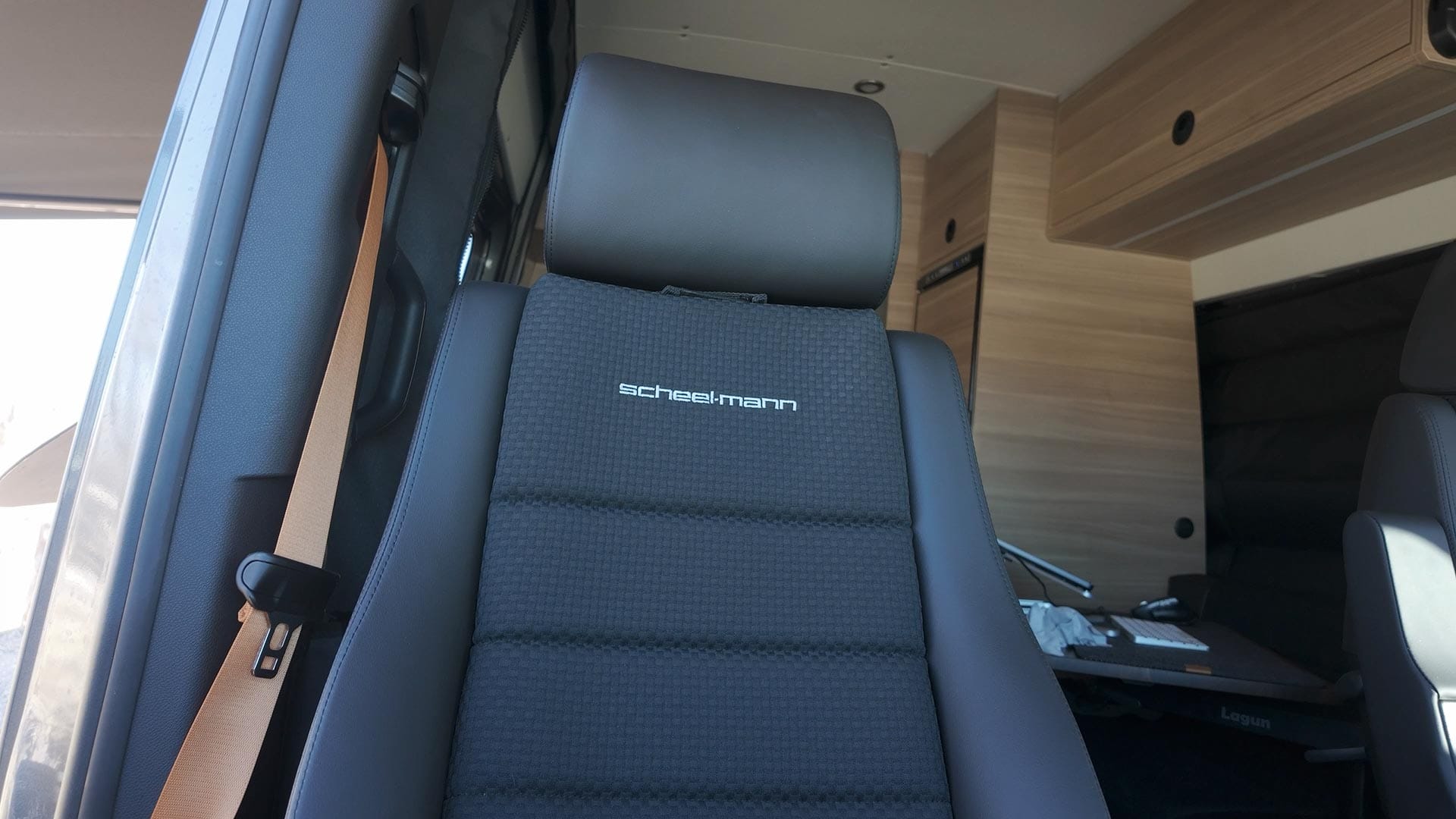 Both the driver and passenger chairs from Mercedes were replaced with scheel-mann Vario F XXL seats. Why buy expensive seats when the van already has them? Because scheel-mann seats are far more comfortable when driving long distances. I can drive for hours sitting in these and not feel awful afterwards.