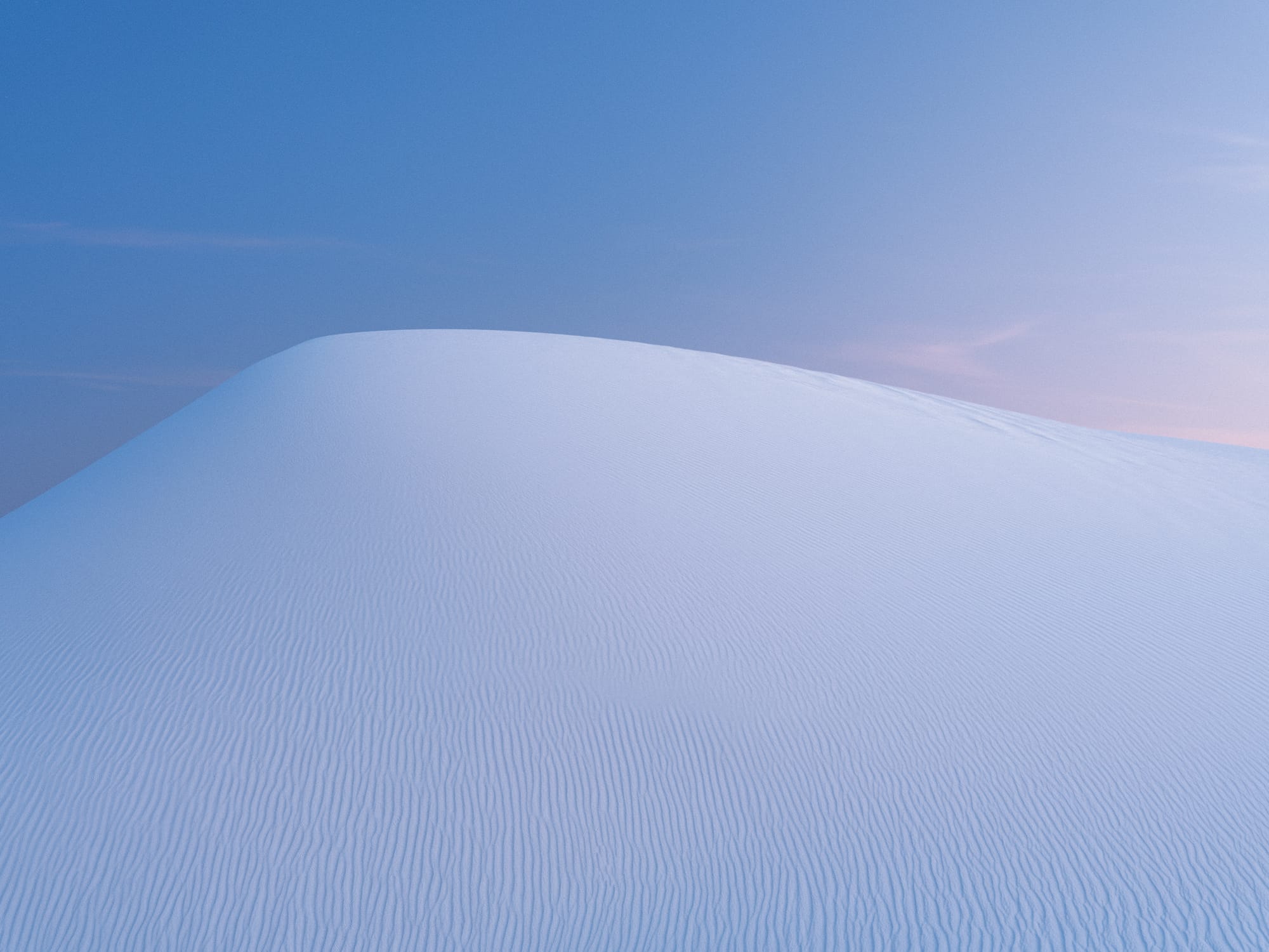 Every year for the past few years, I've made the trip down to southern New Mexico to photograph the gleaming white gypsum dunes at White Sands National Park. Most visitors come to sled, picnic, and watch the sunset. For me, the park is a treasure hunt for lines, curves, color, and light. Hike far enough into the back of the field and the sand is pristine, unmarked by the crowds closer to the parking lots.